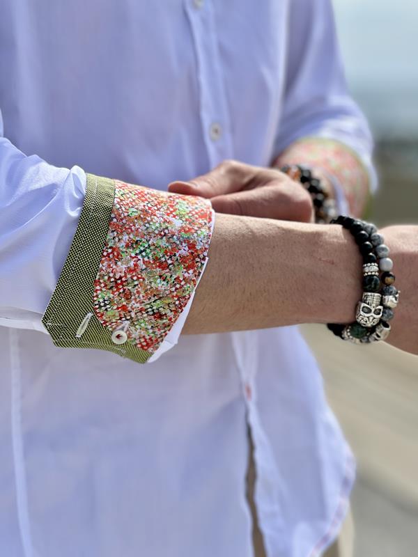 • Camisa Blanca Cozzo con detalles puño en verde
