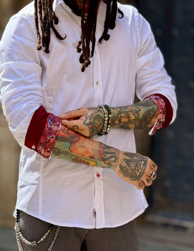 • Camisa Blanca Prata puño detalles en Roja