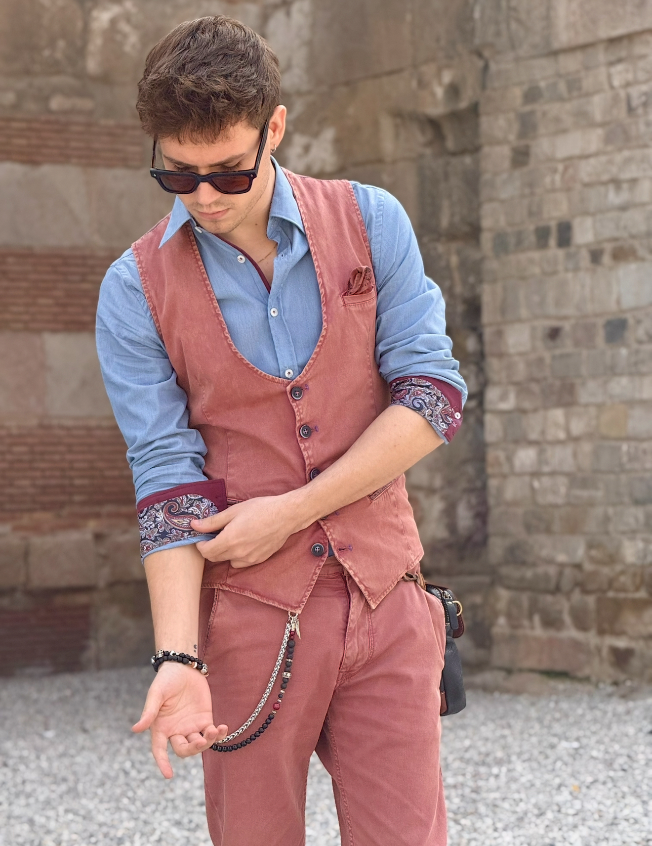 Chaleco con tejido de punto, parte frontal en color mineral, solapa. Parte trasera elástica denim.