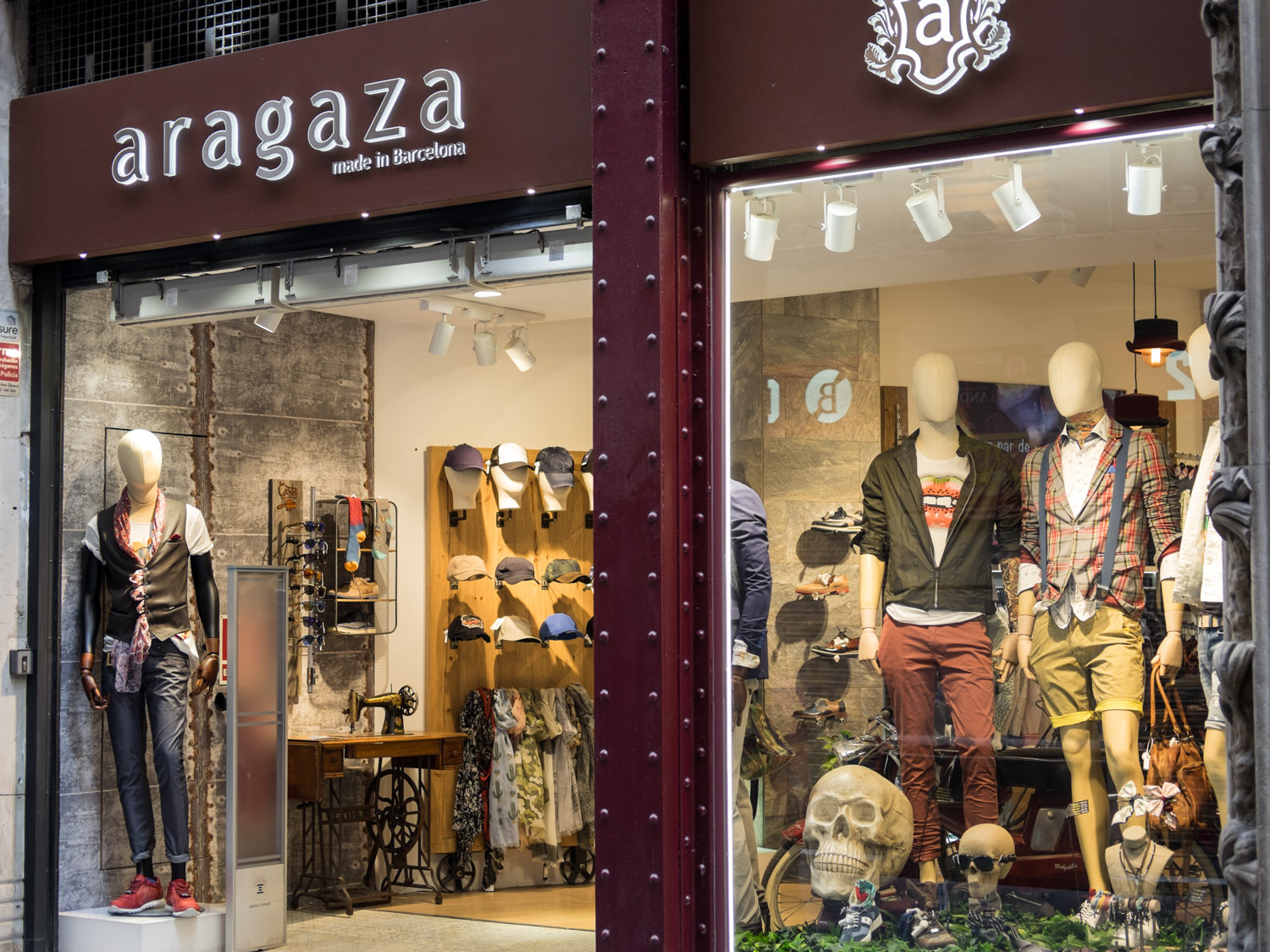 From the Plaza Catalunya square, entering to the Portal del Ángel,